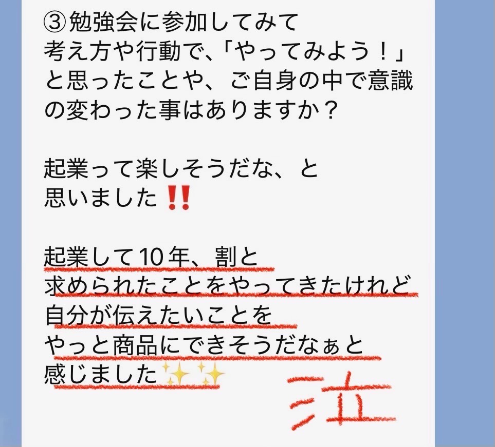 公式ラインでこっそり(笑)募集している勉強会へご参加の方の声をそのまんまお届けします!