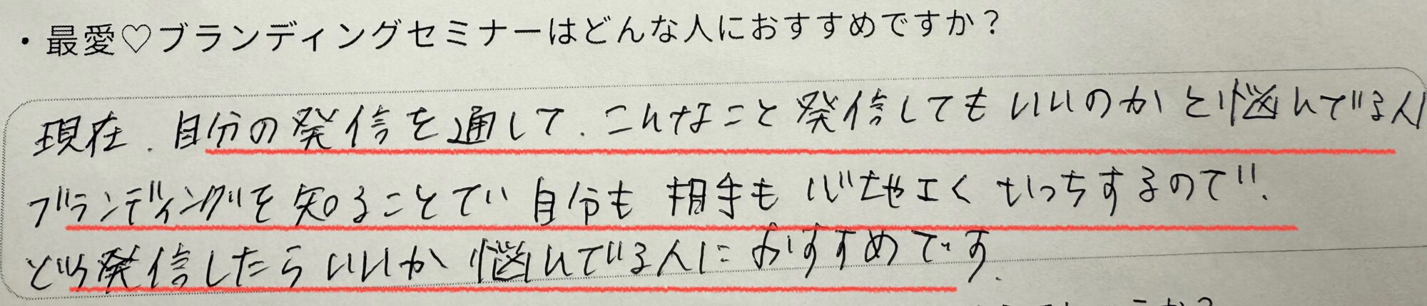 自分ブランド作りセミナー「最愛♡ブランディング」を受講してくれた方からのアウトプットをシェアしていきます^^!