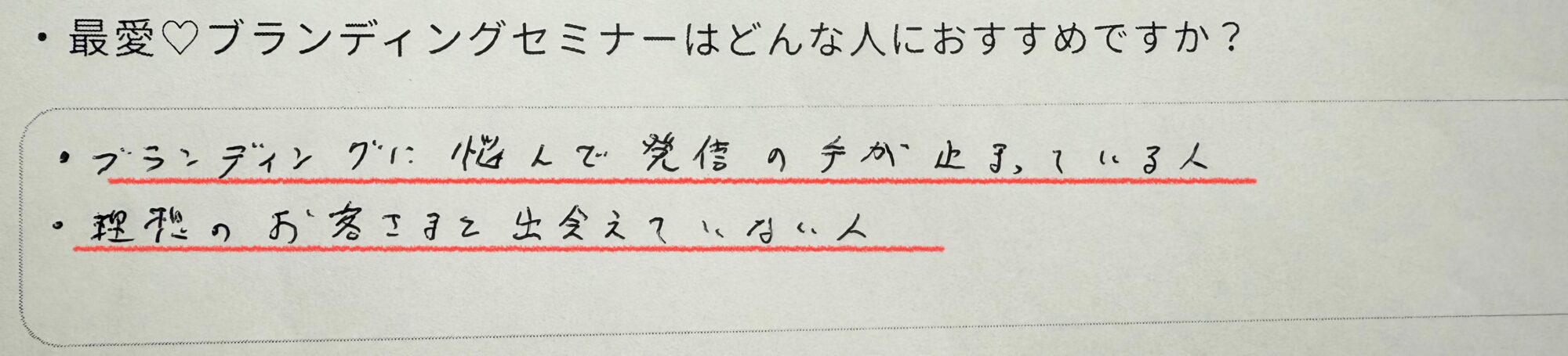 「発信をしているけど、なかなか理想のお客様に出会えていない方」