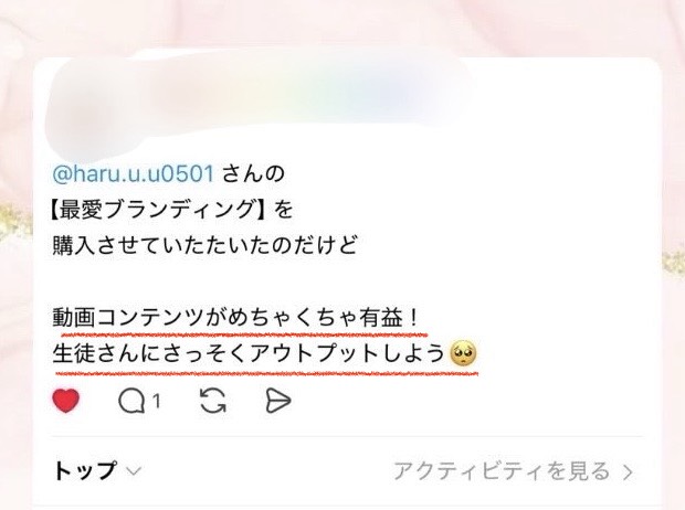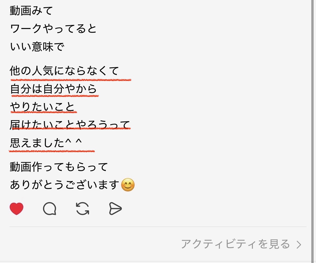 ご自身のSNSアカウントで感想をシェアしてくれたり、ラインに個別メッセージを送ってくれたり・・・